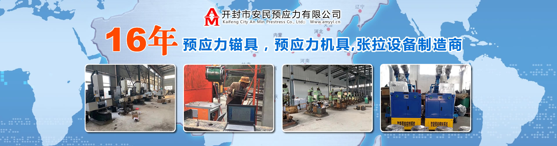 開封市安民預(yù)應(yīng)力有限公司KAIFENG CITY ANMIN PRESTRESSED CO LTD. 開封市安民預(yù)應(yīng)力有限公司是研制、生產(chǎn)、銷售各種預(yù)應(yīng)力產(chǎn)品及預(yù)應(yīng)力施工的專業(yè)廠家。公司主導(dǎo)產(chǎn)品為AM、BM系列錨具,鐓頭錨、弗氏錨、P型錨、精軋螺紋鋼錨具及配套各系列干 斤頂、高壓油泵、灰漿泵、攪拌機(jī)、制管機(jī).智能張拉.智能壓漿等機(jī)具產(chǎn)品。公司產(chǎn)品已達(dá)到GB/14370-2007標(biāo)準(zhǔn)及國際預(yù)應(yīng)力混凝土協(xié)會《FIP1993》標(biāo)準(zhǔn)。 公司設(shè)備**,技術(shù)力量雄厚。原材料從采購、生產(chǎn)、檢驗(yàn)和服務(wù)的全過程中,均在國際標(biāo)準(zhǔn)質(zhì)量體...
